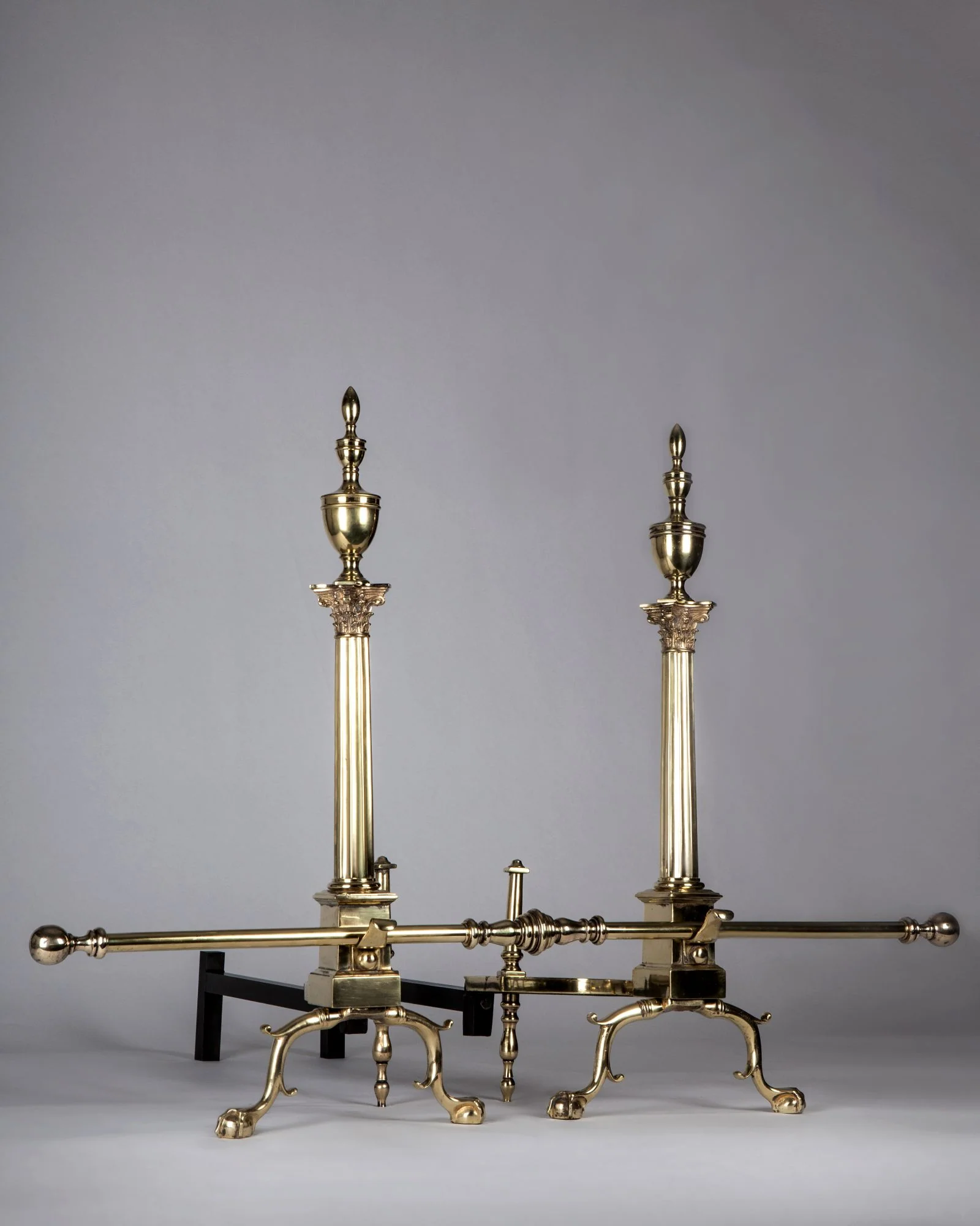 Corinthian Column Andirons with Urn Form Finials