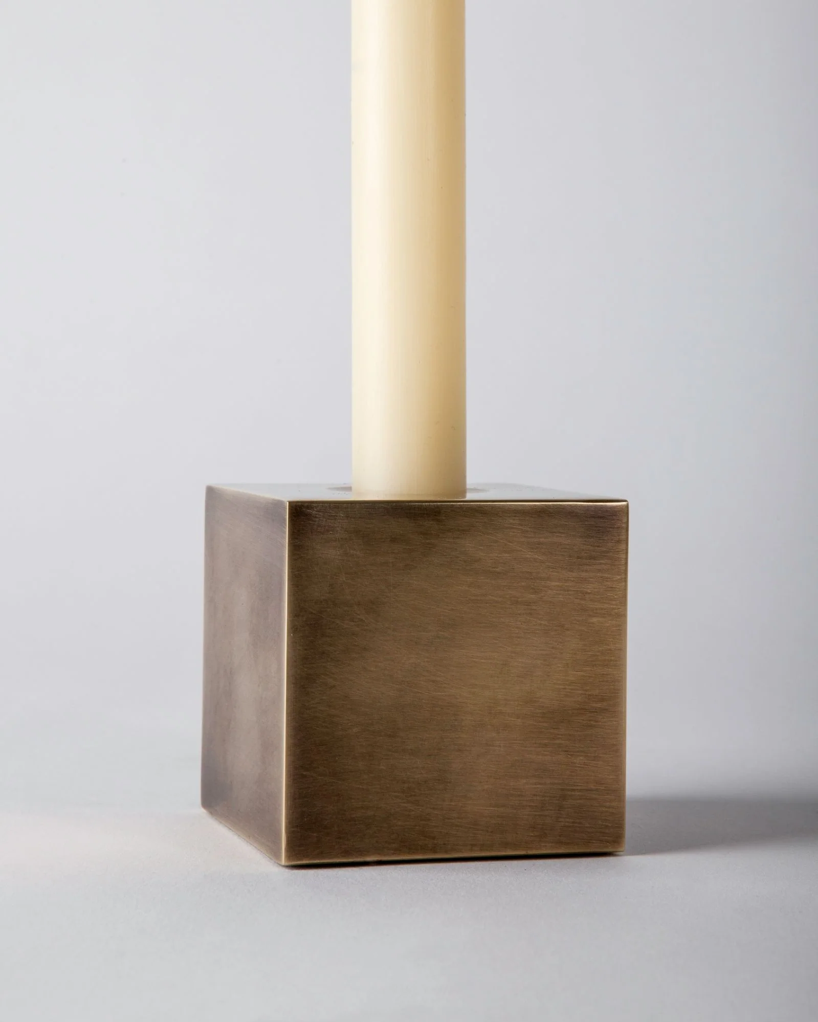 The Cube candlestick is a simple yet precise cube of solid brass. Part of our set of universal geometric building blocks.