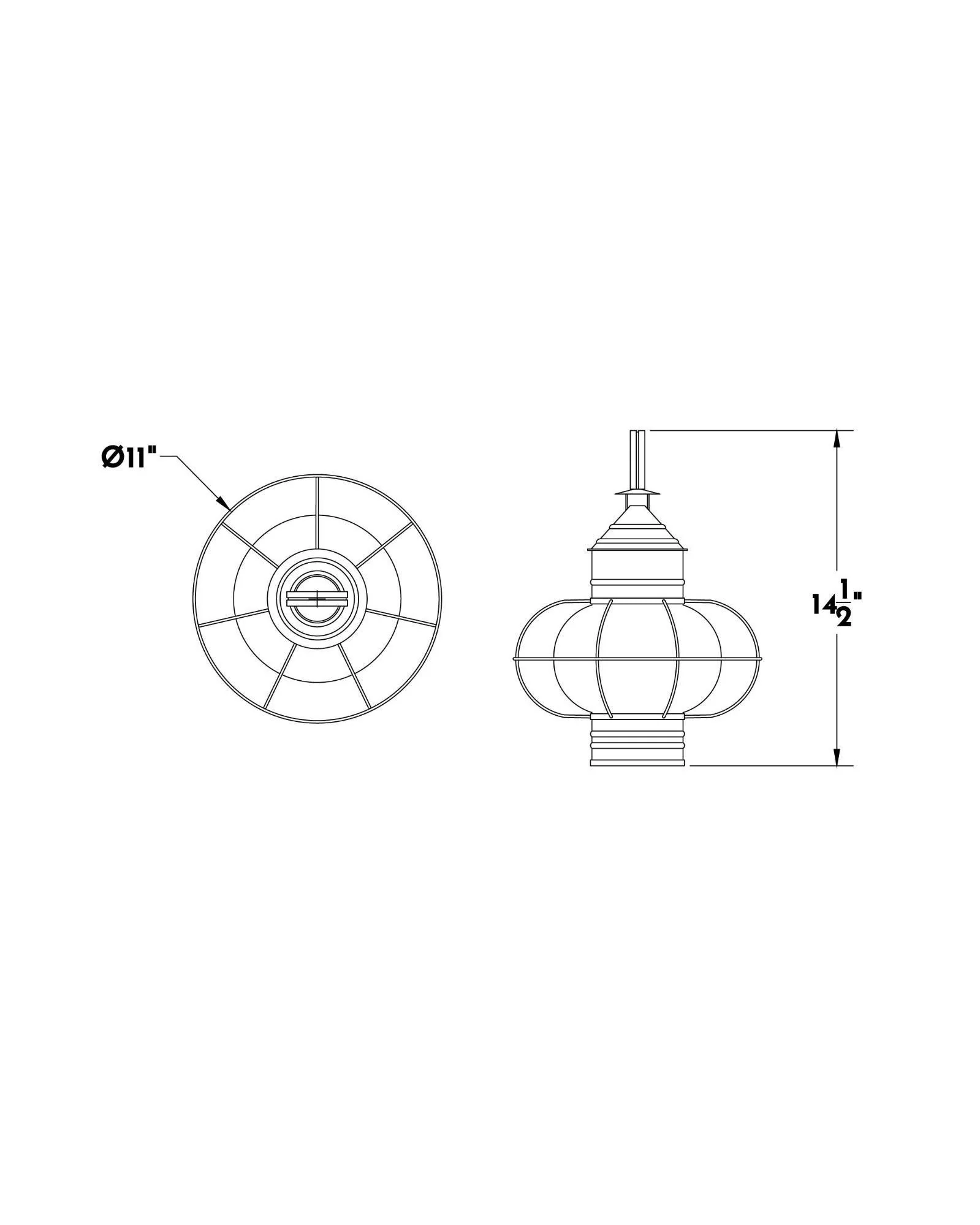 A copper wire caged hand blown "onion" glass lantern with punchwork decorated cylinders above and below the globe. This type of lantern was originally fueled by whale oil and was frequently associated with maritime use. New England, circa 1830. Designed and manufactured by Scofield Lighting.