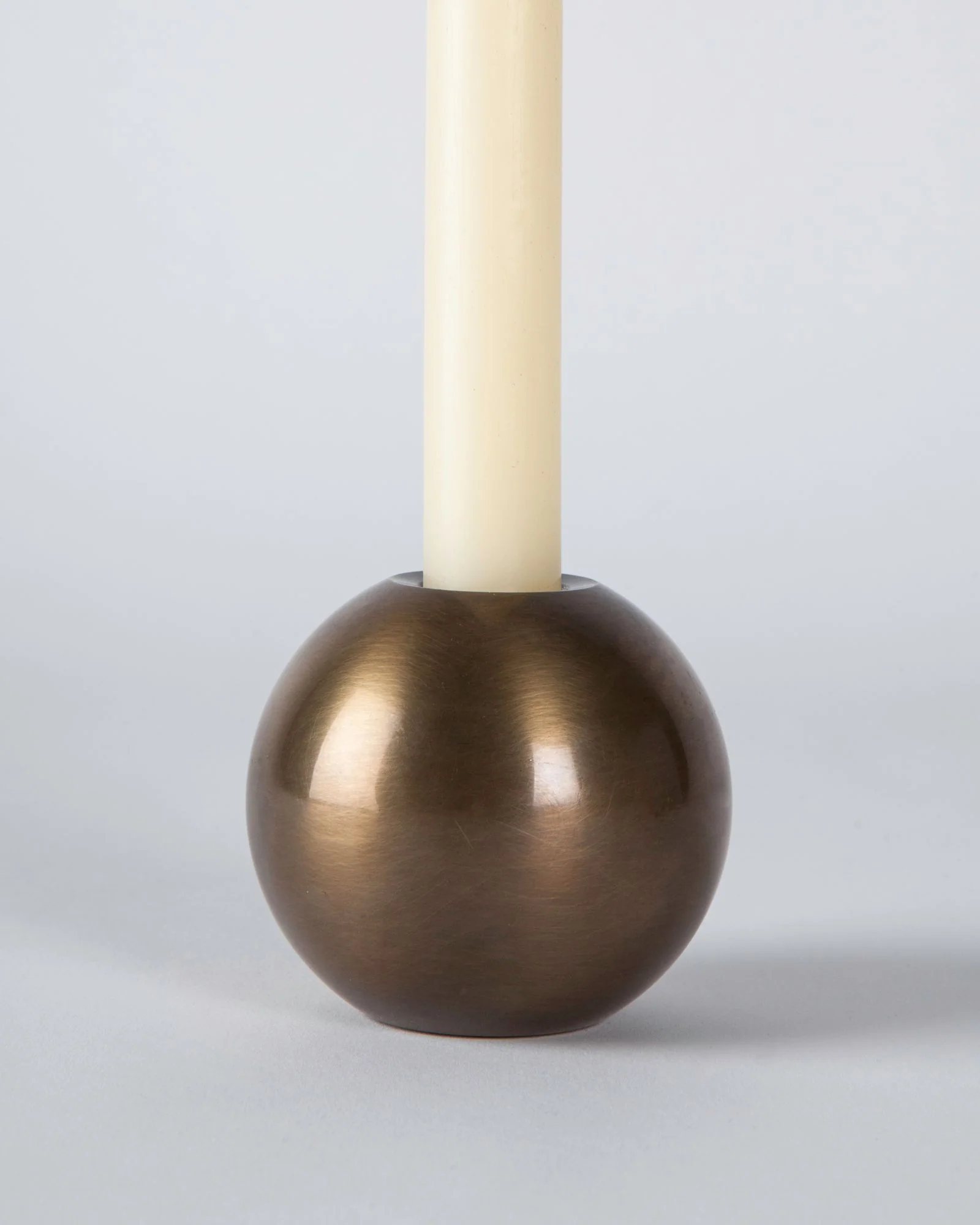 This solid brass candlestick is a perfect, flawless and strong sphere, like mother earth. Part of our set of universal geometric building blocks.
