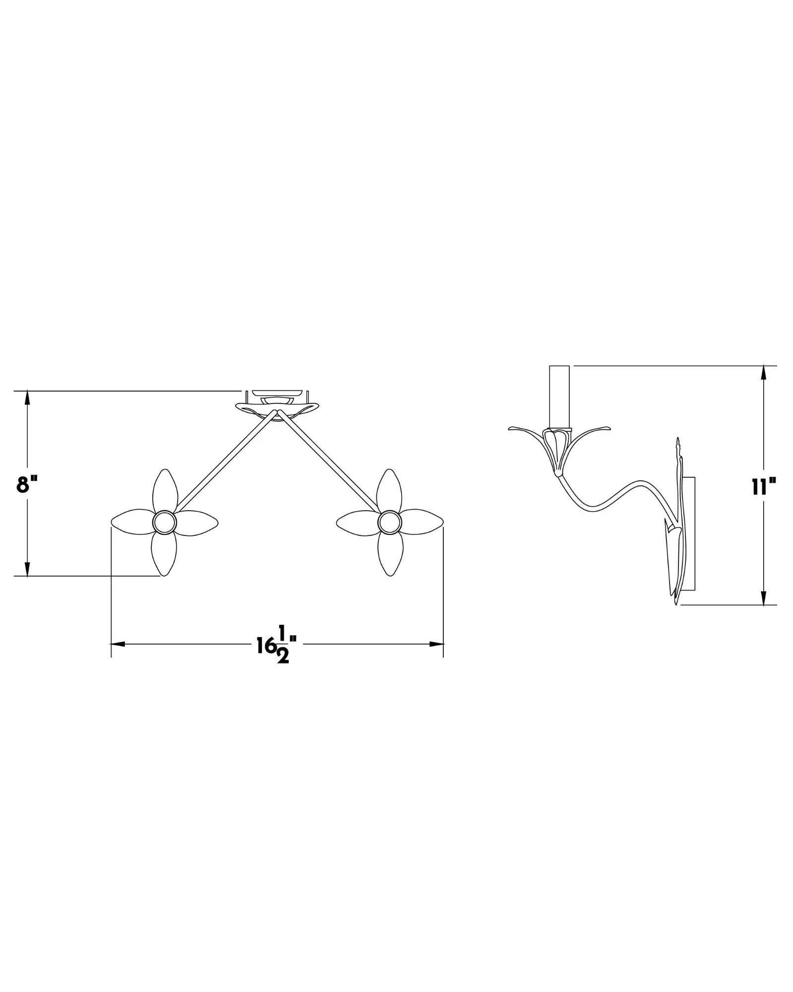 A double arm wall sconce with egg shaped backplate and tulip detail on bobeche, armback and finial. New England, 18th century. Designed and manufactured by Scofield Lighting.